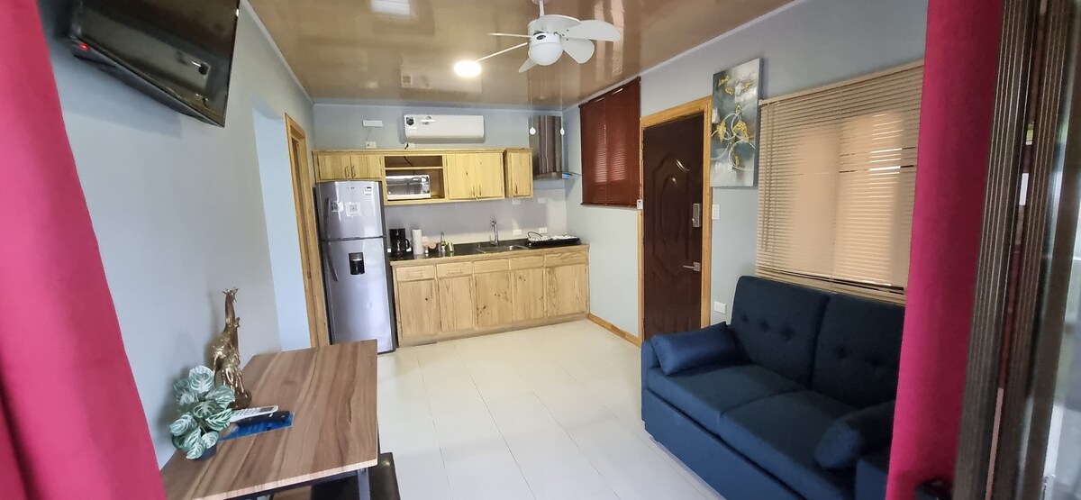 Vi ligger 500 meter fra indgangen til Marino Ballena National Park, vi tilbyder en fuldt udstyret lejlighed til 1 eller 4 personer med fine finish, helt sikker og hyggelig . Det omfatter stue, komplet køkken, badeværelse, to værelser med en queensize-dobbeltseng hver, aircondition, tv med streamingtjeneste og gratis fiberoptisk WIFI, vi har også en swimmingpool og gratis og sikker parkering.