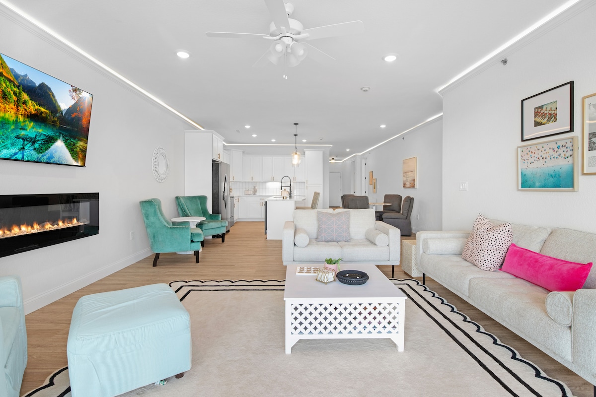 Forkæl dig selv med en luksuriøs ferie i denne rummelige og hyggelige 78 kvadratmeter store bolig. Privat loftslejlighed i Treetop Village, beliggende i Four Seasons Village – et af Lakes mest eftertragtede områder. Sov i luksuriøse Cariloha-lagner. Slap af i vores private spabad ved søen, eller padl i kajakker i bugten. Svømmebassiner og pickleball-bane 1 minutters gang. Nyt vand- og fitnesscenter med indendørs pool 400 meter væk. Nyd gåture i vores 10 hektar store skovlignende område. Perfekt til en romantisk smuttur eller et uforglemmeligt familieeventyr