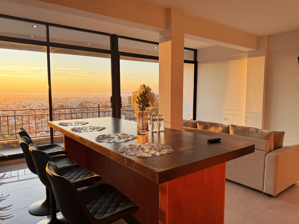 Vive la experiencia de hospedarte en una de las zonas más emblemáticas de la ciudad. Este departamento está ubicado en el cerro de los remedios. A unos pasos del teleférico. Podrás apreciar espectaculares vistas desde la comodidad del sofá o desde la barra mientras disfrutas de tu platillo favorito en compañía de tu familia o amigos *No está permitido fiestas o reuniones* Evítanos la pena de cancelar tu reservación