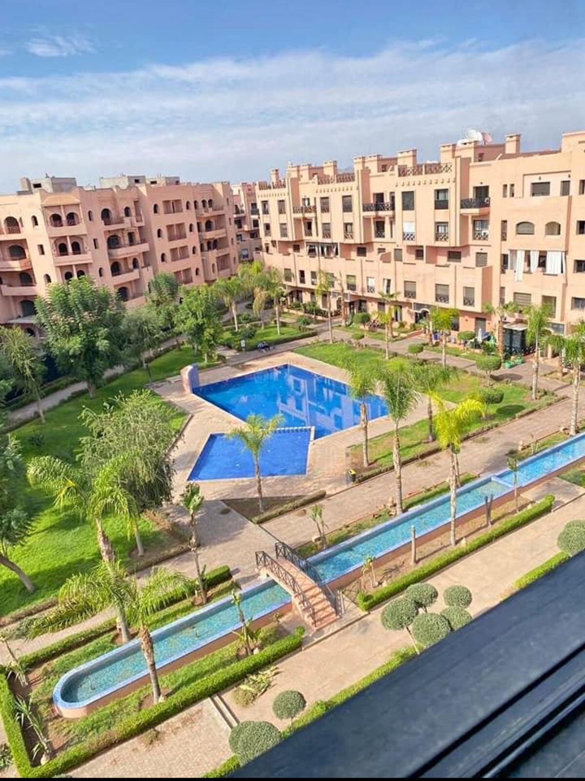 Lejligheden ligger i hjertet af et eksklusivt, døgnsikret beboelsesområde (Pearl Garden) og har udsigt over swimmingpoolen og den storslåede indendørs have, som du kan nyde fuldt ud fra terrassen. Nyligt renoveret og omhyggeligt indrettet i en moderne og romantisk stil i perfekt harmoni med boligens eksklusive design. Boligen ligger i 3 minutter fra supermarkedet. Marjane 11 minutter fra Gueliz 10 minutter fra Jardin Majorelle 16 minutter fra den hemmelige have 17 minutter fra Jemaa El Fina-pladsen