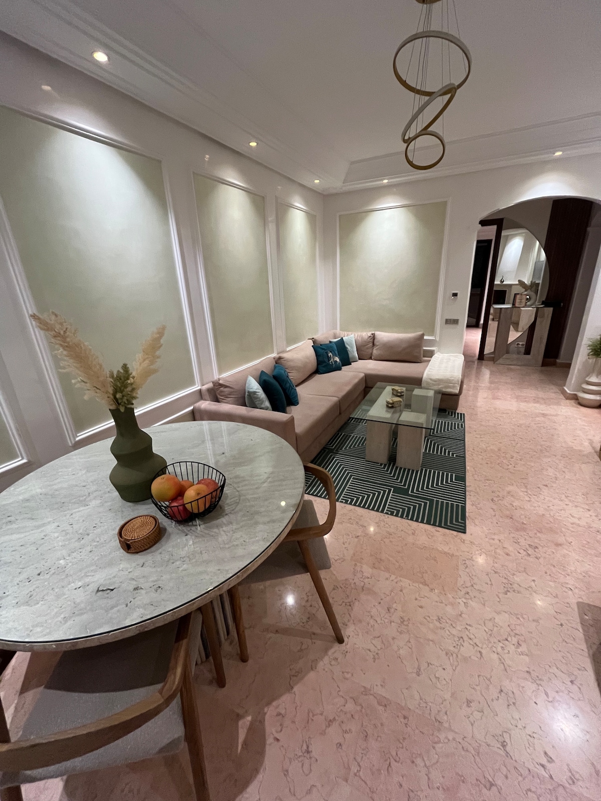 Oplev denne smukke lejlighed med 2 soveværelser + stue i Gueliz. Indretningen er moderne og elegant med et strejf af orientalsk stil. Boligen er ny, rolig og sikker, og den har en swimmingpool. Perfekt beliggende, tæt på alle bekvemmeligheder ... Vi tilbyder 3 valgmuligheder for morgenmad (mod betaling), der leveres hele ugen, undtagen søndage, på alle tidspunkter. NB: Vi overholder marokkansk lovgivning om udlejning. (se vores interne regler) GODT OPHOLD HOS OS!!