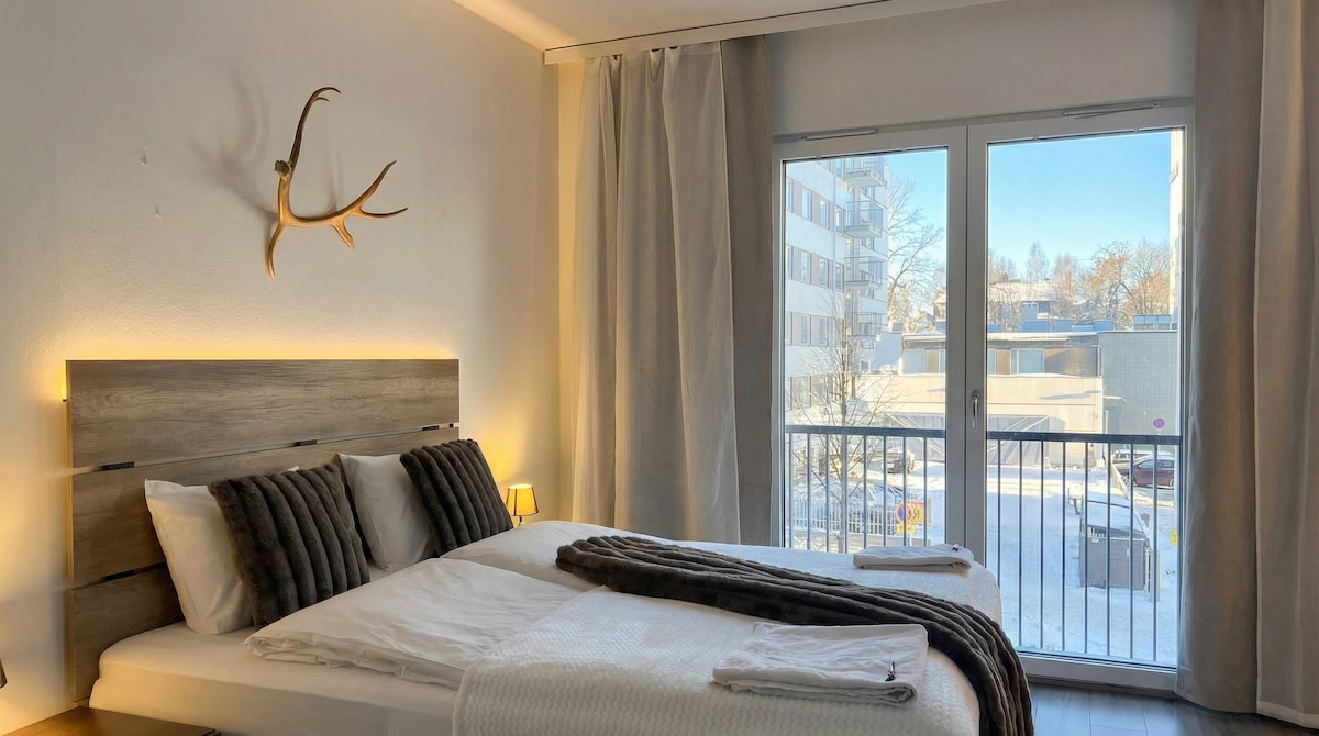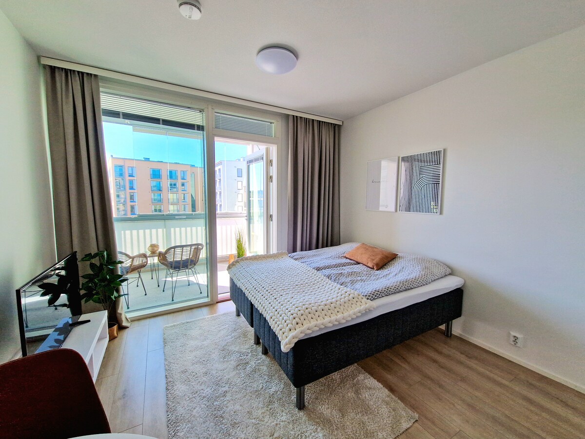 Moderne 47,5 kvm lejlighed med et soveværelse kun 10 min gang til centrum. Nem adgang til offentlig transport og alle de faciliteter, byen tilbyder. Lejligheden har fuldt udstyret køkken, 49" UHD Smart TV, hurtig Wi-Fi og egen sauna! I soveværelset er der queensize-dobbeltseng og i stuen 80 cm ekstra madras. Lejligheden er god til grupper på 3 personer! Parkering i varm garage. Mulighed for at oplade elbil for 20c/kwh.