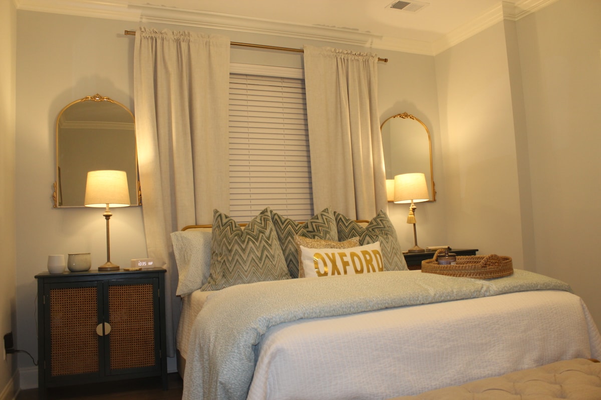 Helt ny gæstesuite færdiggjort marts 2025 i hjertet af Oxfords historiske distrikt. Beroligende, fredelig, spansk genoplivningsstemning. En halv mile gåtur til pladsen og 1 mile gang til Ole Miss campus og atletiske begivenheder. Gæstesuiten er knyttet til hovedhuset (adskilt af en indvendig gangbro), separat udgang og indgang er ned ad en gangbro på venstre side af boligen med adgangskode til indgang/udgang. Stabelbar vaskemaskine og tørretumbler samt mikrobølgeovn, drikkekøleskab og Nespresso-kaffemaskine.