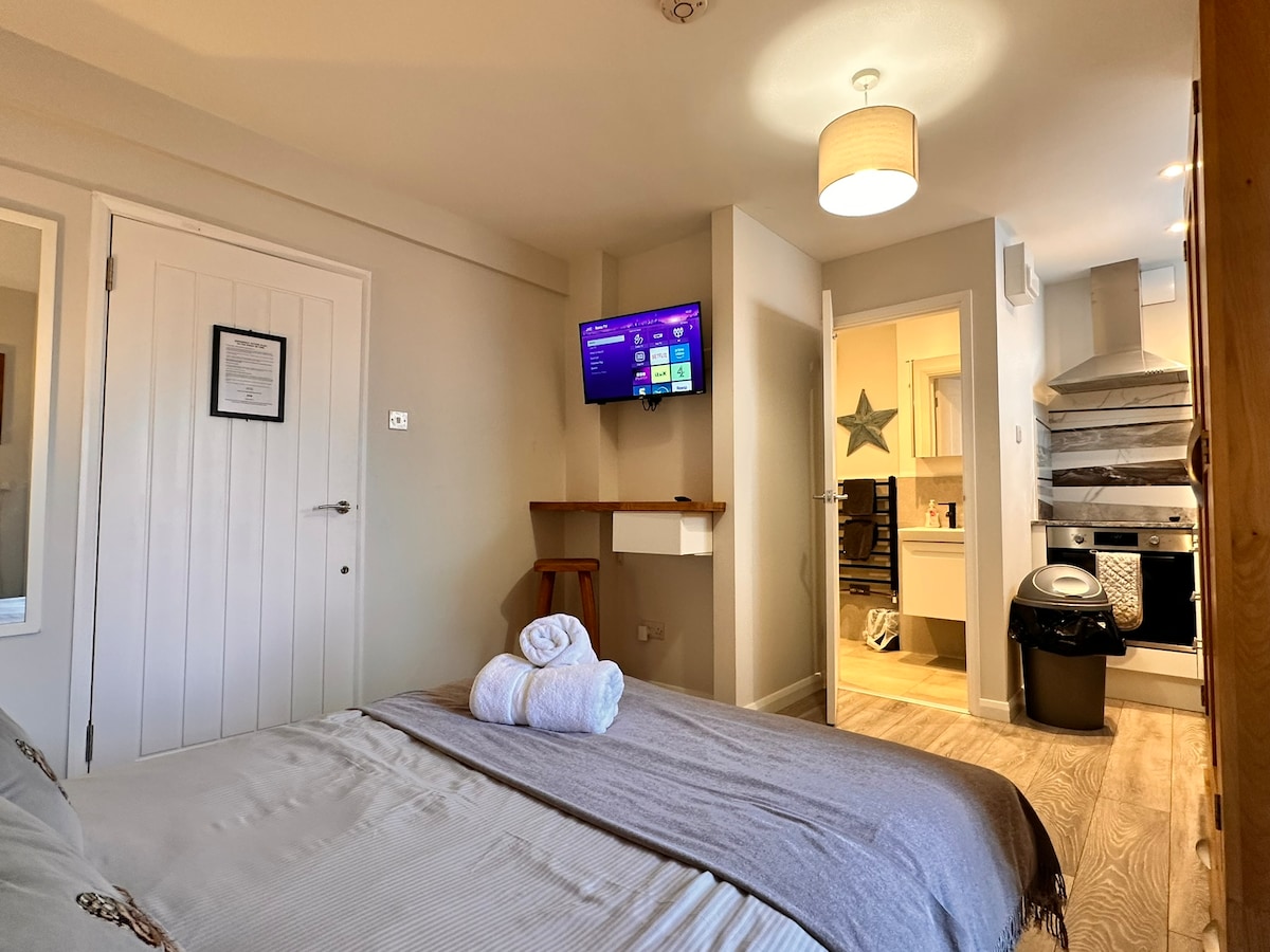 Stueetagelejlighed med egen indgang, tæt på Ascot, Windsor, Legoland og fantastisk til at udforske Berkshire. Kort gåtur til Bracknell togstation, butikker, restauranter og Lexicon indkøbscenter. Lys plads i åbent plan med kingsize-dobbeltseng, fuldt udstyret køkken og moderne badeværelse. Gratis parkering, hurtig Wi-Fi, tv med streamingtjenester, behagelig arbejdsplads og indtjekning uden vært. Perfekt til forretningsrejser, weekendophold eller for at besøge lokale attraktioner.
