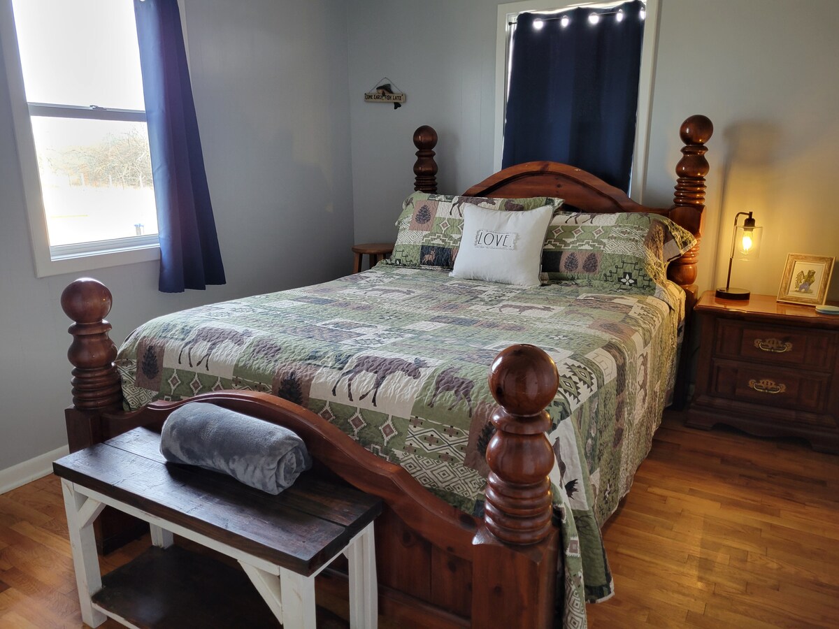 Welcome to your peaceful escape in the Ozarks! Nestled in a quiet country setting just half a mile from the beautiful North Fork River, this spacious two-story log cabin is the perfect retreat for families & friends. The cabin sleeps 8-10 guests comfortably with 3 cozy bedrooms, 2 full bathrooms. Enjoy your morning coffee surrounded by nature, then spend the day kayaking, hiking, or simply unwinding in the serenity of the Missouri Countryside. Soaking in all the beauty and peace of the Ozarks.