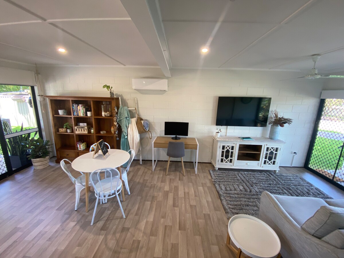 Denne bolig er det perfekte sted at slappe af under dit ophold. Når du er gået ind gennem hovedporten, fortsætter du til din Airbnb-indgang og dit private område, på den delvist overdækkede terrasse, der har udendørs bord og stole. Gå ind gennem døren til din bolig. Fuldt kanalisering af aircondition og loftsventilatorer queensize-seng. Tekøkkenet har en bar køleskab mikrobølgeovn brødrister kande kogeplade kaffemaskine vaskemaskine vask bestik tallerkener kopper glas. Strygejern og strygebræt Hårtørrer Toiletartikler Wi-fi Netflix