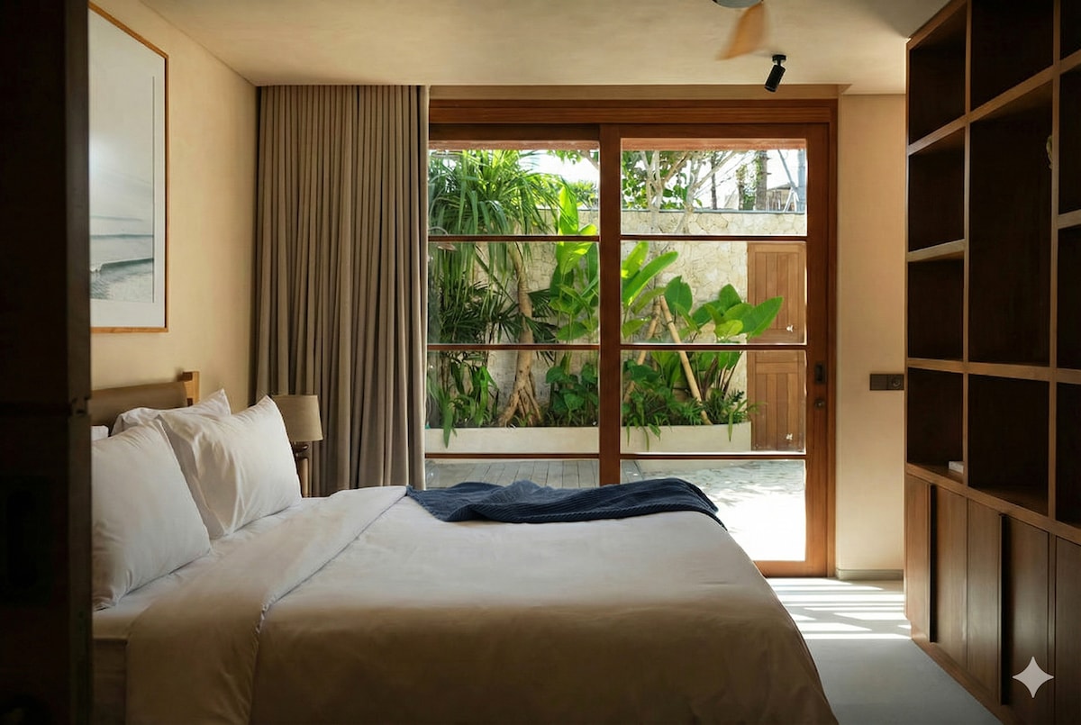 Wake up in your own slice of paradise at Nori Boutique Villa 2-Bedroom , where tropical charm meets modern comfort. Start your day with a refreshing swim in your private pool, enjoy Sunset cocktails in the outdoor lounge as the tropical breeze drifts through. With two en-suite bedrooms, soaring ceilings, and lush surroundings, this villa is perfect for families or friends seeking both privacy and connection - just minutes from Nyang Nyang Beach - Uluwatu.