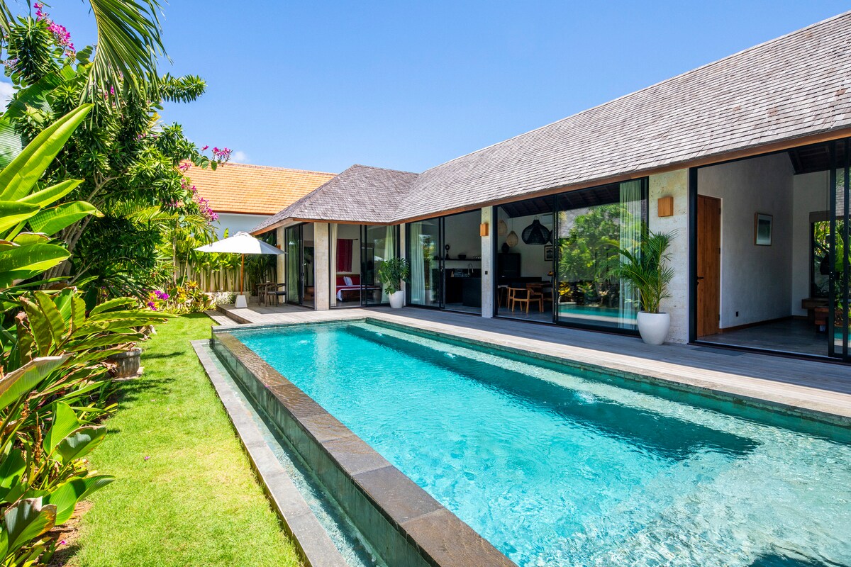 Unwind at our brand new tropical modern villa in the heart of Bingin. 🏝️ 5-8 minutes to Bingin & Dreamland Beach 🛌 Two King beds with premium mattresses, linens, ensuite bathrooms, rainfall showers & blackout curtains 🌅 Rooftop Sauna, Plunge Pools & Loungers with breathtaking sunset views over Uluwatu 🌴 Private pools surrounded by lush tropical greenery ❄️ AC enclosed living spaces, with sliding doors to let in the ocean breeze 🍽️ Fully equipped kitchen, board games & charming dining nooks