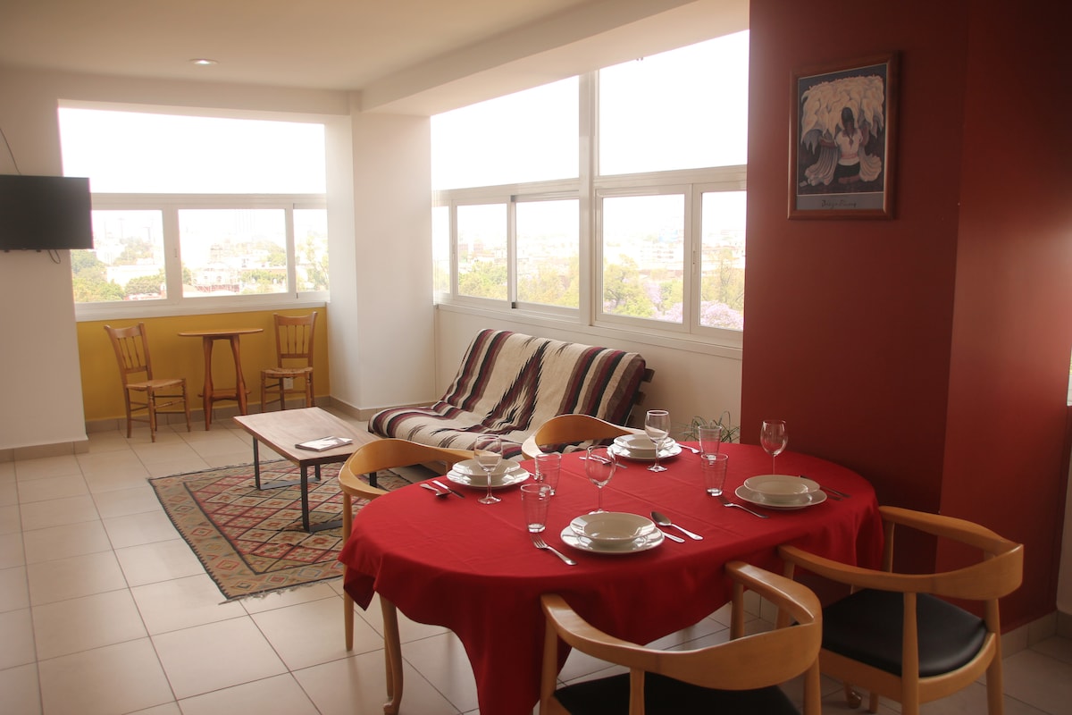 Smuk lejlighed i hjertet af Mexico City, på 10. etage med udsigt over byens skyline. Den er komfortabel, har en futon til at se film og sove på, og du kan nyde kaffen og solen om morgenen. Med plads til op til 4 gæster, udstyret køkken, gratis Wi-Fi og kabel-tv. Omgivet af en lang række museer og restauranter, samt flere andre interessante steder i hovedstaden. Vi accepterer kæledyr, kun hunde, maks. 2, mod betaling.