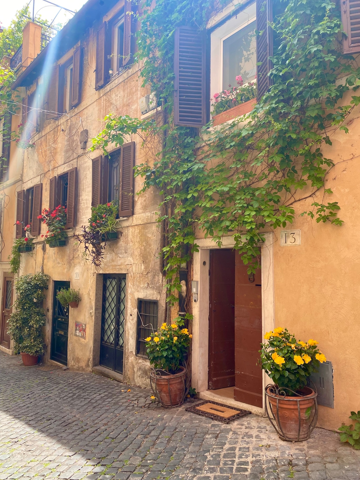 Bright and quiet penthouse apartment in the heart of Trastevere, with a wonderful terrace and an unparalleled view of charming roman roofs and the Gianicolo hill. The flat is meticulously refurbished and set in a picturesque cobblestoned street, just around the corner from the lively restaurants and cafes. La Casetta al Mattonato is located on the 3rd floor (41 steps, no elevator) of a 1600s typical roman building, within walking distance of all major attractions.