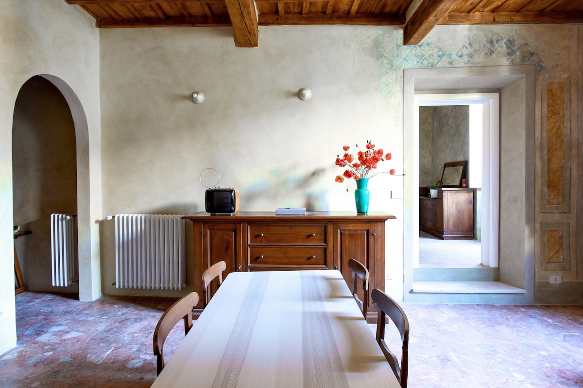 Denne pragtfulde lille lejlighed ligger på øverste etage i en bygning ved siden af Ponte Vecchio. Firenzes hjerte er lige under dig; så snart du kommer ud af hoveddøren, vil du befinde dig et par meter fra den pragtfulde Piazza Signoria eller den fascinerende katedral Duomo og 10 minutters gang fra den centrale station Santa Maria Novella. Fra vores terrasse, mens du nyder et glas vin, har du en unik udsigt over vores bys vidundere foran dig!