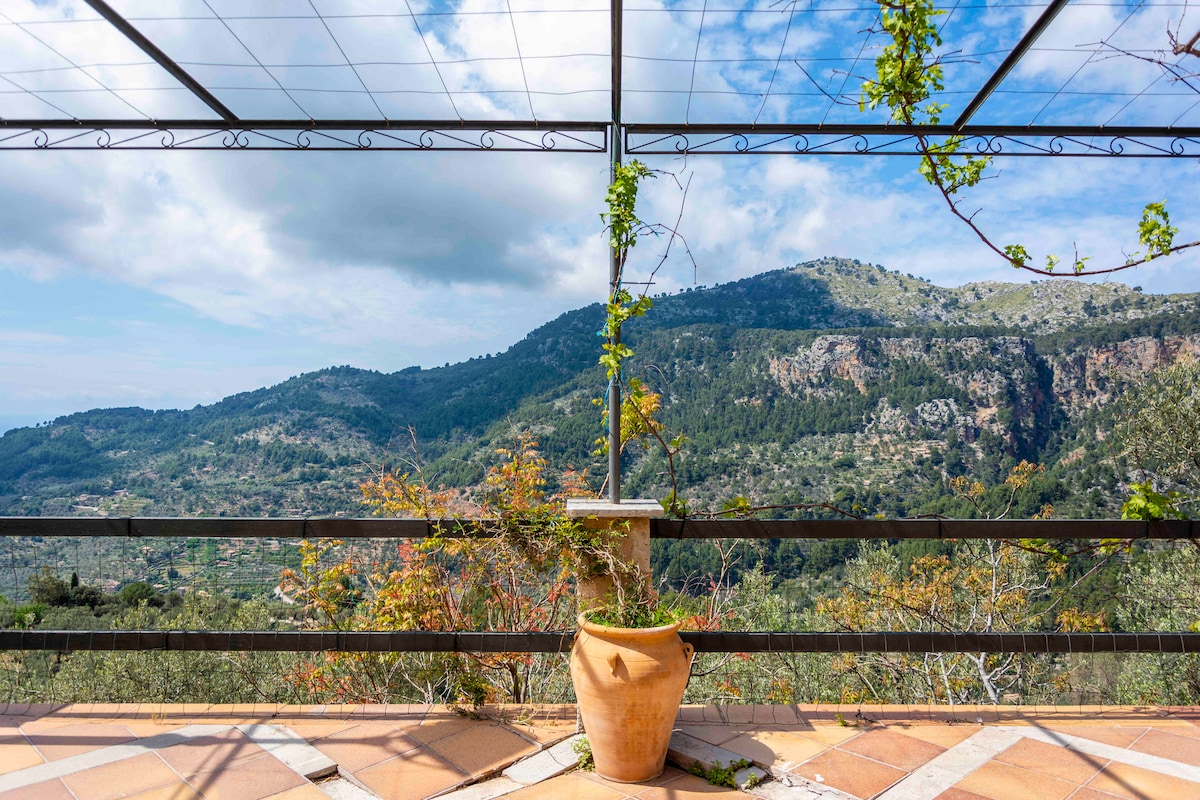 Soller solrig hytte, panoramaudsigt og pool.