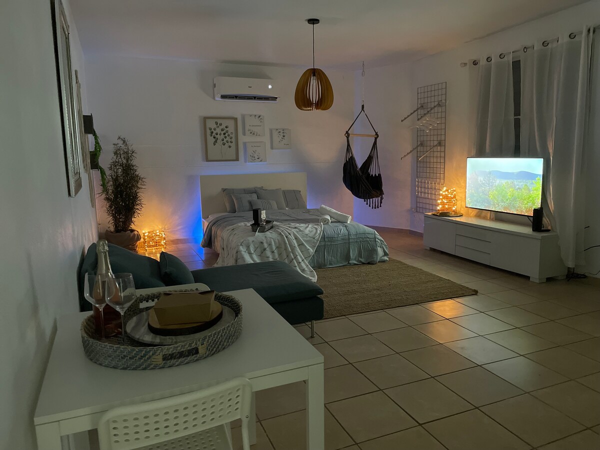 Dejligt og hyggeligt studie med fantastiske bekvemmeligheder, i en strategisk position til hurtigt at nå de bedste strande og de mest attraktive steder i den nordlige del af PR. Forkæl dig selv med roen i dette moderne bohostudie. Tag et glas vin, mens du nyder Netflix, eller slap af ved poolen. Tilbring en nat under stjernerne i et forfriskende spabad. For at få en frisk start giver vi alle, der bor et sted, hvor de kan lade op, slappe af og nyde. Oplev oplevelsen på Aqua Loft Suite ***Ingen fælles områder