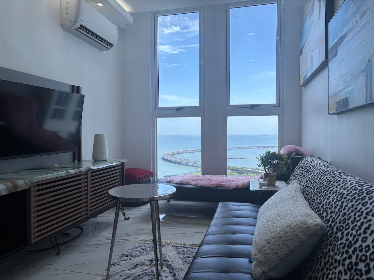 Vågn op til betagende havudsigt i denne moderne lejlighed på den eksklusive Balboa Avenue. Nyd en infinitypool, 360° skylounge, fitnesscenter, restauranter, kontorfællesskaber og unikke underholdningsmuligheder. Kun få skridt fra det historiske kvarter, kystmotorvejen og fiskemarkedet. Perfekt til rejsende, der søger komfort, design og Panamas mest fantastiske udsigt.