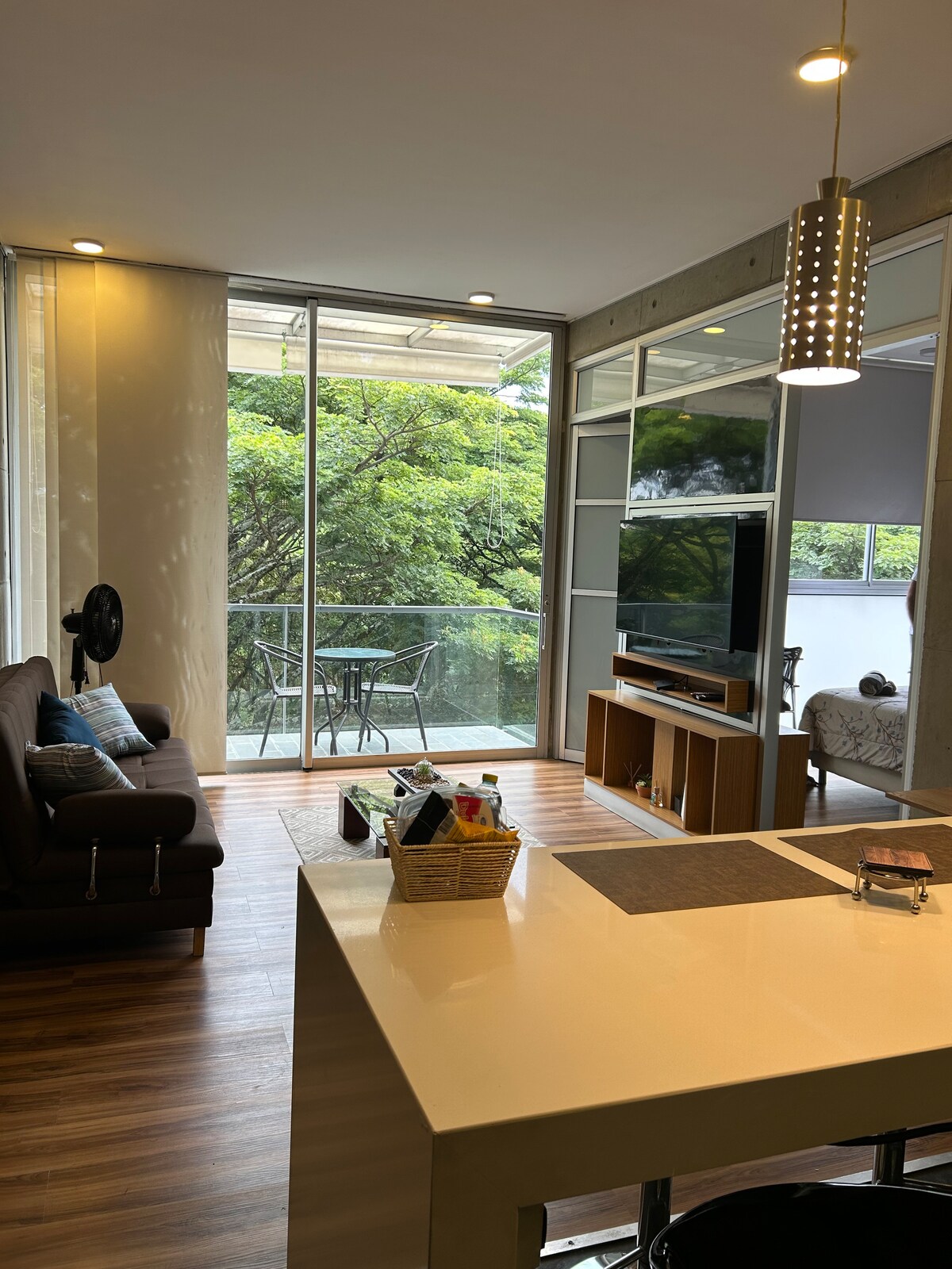 Slap af i vores moderne partaestudio i Pance med udsigt over naturen. Nyd poolen, jacuzzien, det tyrkiske område og fællesområdet. Moderne og udstyret køkken. Beliggende i en rolig og privilegeret del af Cali. Fantastisk til et roligt ophold. tæt på universiteter som icesi, USB, facade, Pance River og indkøbscentre som Unicentro og Jardin Plaza. Adgang til indkøbscentre og forskellige spisesteder. Et ideelt sted at bo og studere, med ro og natur.