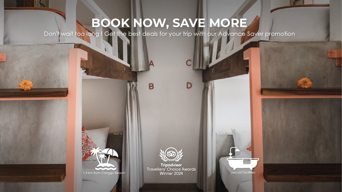 Roomates Canggu 4-køjes sovesal + morgenmad