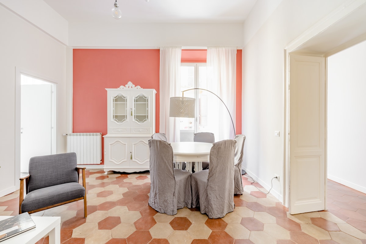 Lejligheden, der for nylig er blevet renoveret, ligger i en bygning fra 1700-tallet i et elegant, roligt og stille kvarter, kun få skridt fra Roms centrum. Den har privat indgang, en stor stue med åbent køkken og to soveværelser med dobbeltsenge udstyret med alle bekvemmeligheder og hver med eget badeværelse. Metrostationen "Policlinico" er kun 250 meter væk, og dette giver gæsterne mulighed for at komme til det historiske centrum på 10 minutter og kun et stop fra Roma Termini.