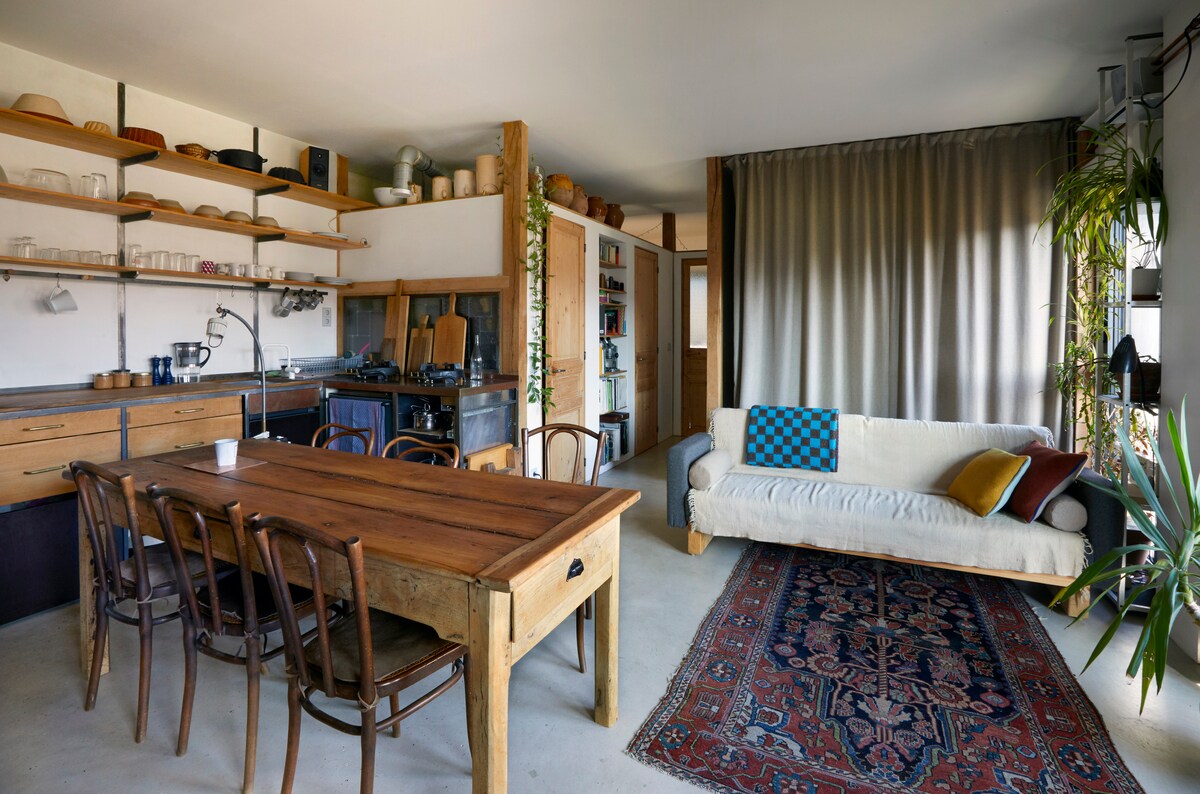 L’idée pour la construction de cet appartement est basé sur le principe écologique et la meilleure qualité possible. Pour la santé et au bien-être de ses occupants. Les matériaux utilisés sont naturels, bois, métal, laine de bois pour l’isolation et peintures biologiques. Une partie des matériaux ont été récupèré et restauré, les poutres en chêne, les portes et les radiateurs entre autres.