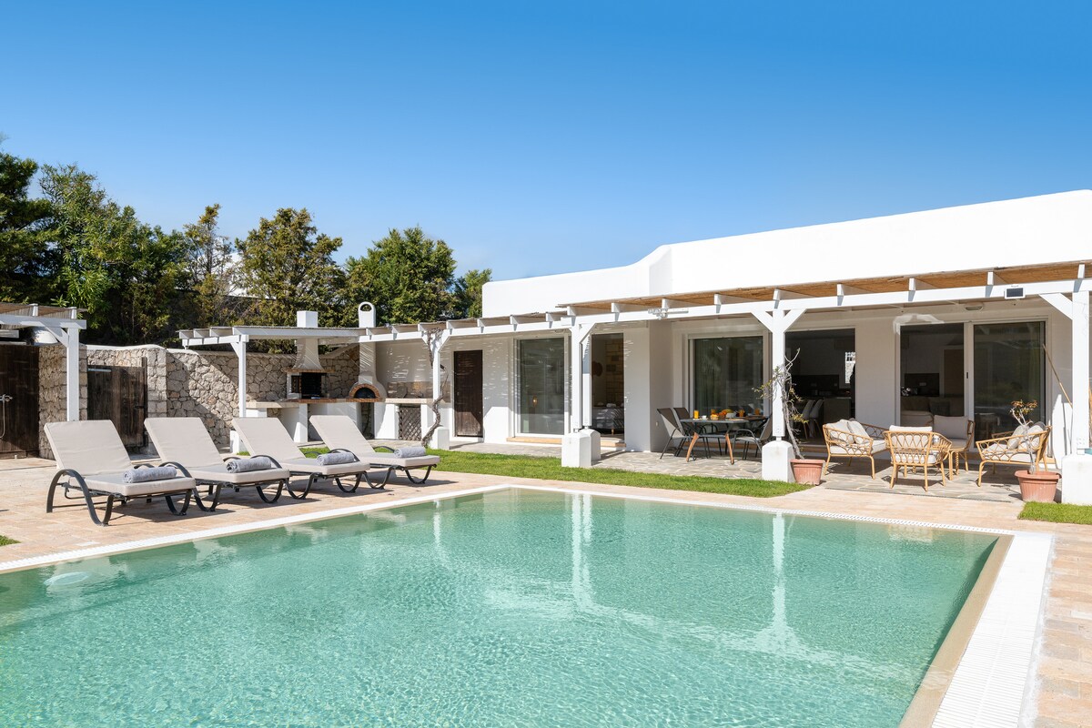 Slap af i denne moderne arkitektvilla i græsk stil. Førsteklasses service garanteret! : Du vil blive udlejet af en charmerende professionel concierge på stedet, der vil være til din rådighed og vil gøre alt for, at du får et vidunderligt ophold. Komfortabel fuld af fødder med en rigtig stor infinitypool. Store lyse værelser med store vinduer med udsigt over udendørsområderne. Ideelt beliggende i et roligt område.
