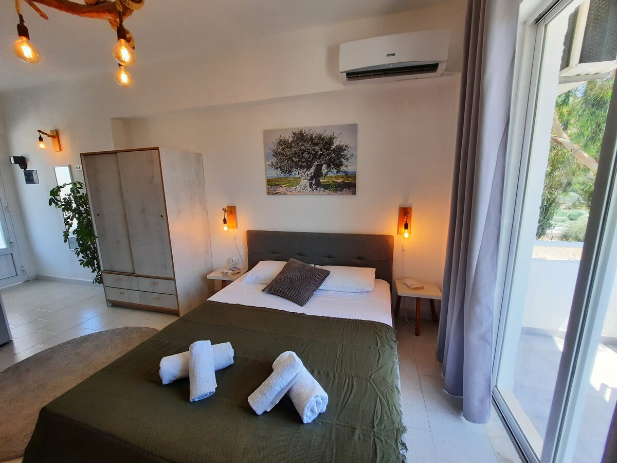 Vores atelier er ideelt til par, soloeventyrere, familier med et barn og dyreelskere. Det 35 kvadratmeter store studie ligger på en meget rolig bakke, omgivet af et beskyttet område (Natura 2000) (ingen betongade), ca. 2 km fra Afantou-stranden. Det er kun 25 km fra den gamle bydel i Rhodos og Lindos. Hvis vores studie er udlejet, kan du tjekke vores hus, Olive Tree Farm Rhodes, du kan leje det til to personer. God til venner eller større familier. Se også vores oplevelser.
