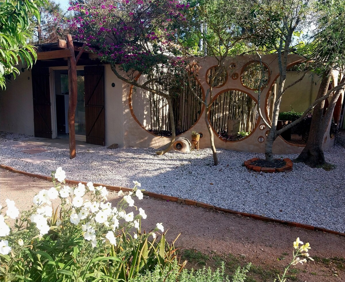 Det er en økologisk studio km 250 rute 10 En atmosfære med en dobbeltseng af fremragende kvalitet er muligheden for at tilføje endnu en seng. Der er elektricitet, køleskabskokke og ovn. Udenfor er der en træterrasse med et brætsæt og 5 stole For en makker eller et kort Der er grill og udendørs pool 3 meter fra døren Badeværelset er privat til studiet Der er wi-fi. Stranden ligger 600 meter væk. Der er god adgang til bilen Brændeovn er til rådighed.