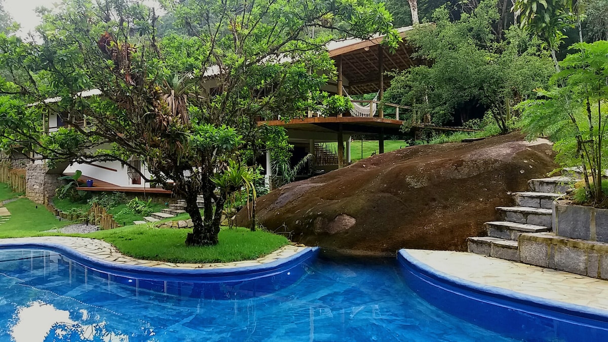 Loftshytte i Paraty, tæt på strande/vandfald.