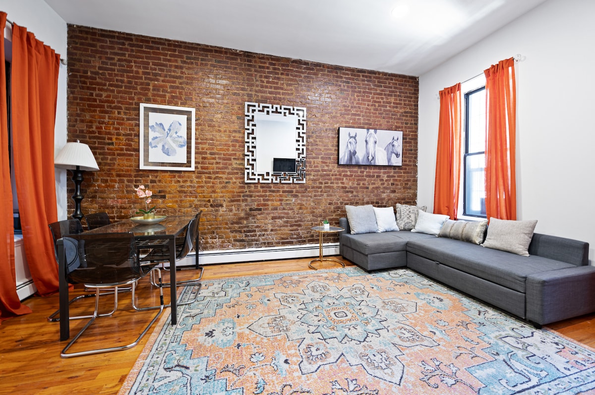 Forkæl dig selv med at bo i vores stilfulde Duplex-bolig med 3 soveværelser og en privat udendørs terrasse. Forbliv problemfrit forbundet til internettet med hurtigt og pålideligt WiFi midt i en kulisse af fængslende lokale kunstværker, moderne komfortabel indretning og basisting - føl dig hjemme med mulighed for at lave mad, slappe af og mestre at bo i New York City. Fordyb dig i byens pulserende kulinariske scene, og nyd nem adgang til metroen kun få skridt fra denne centralt beliggende byferie!