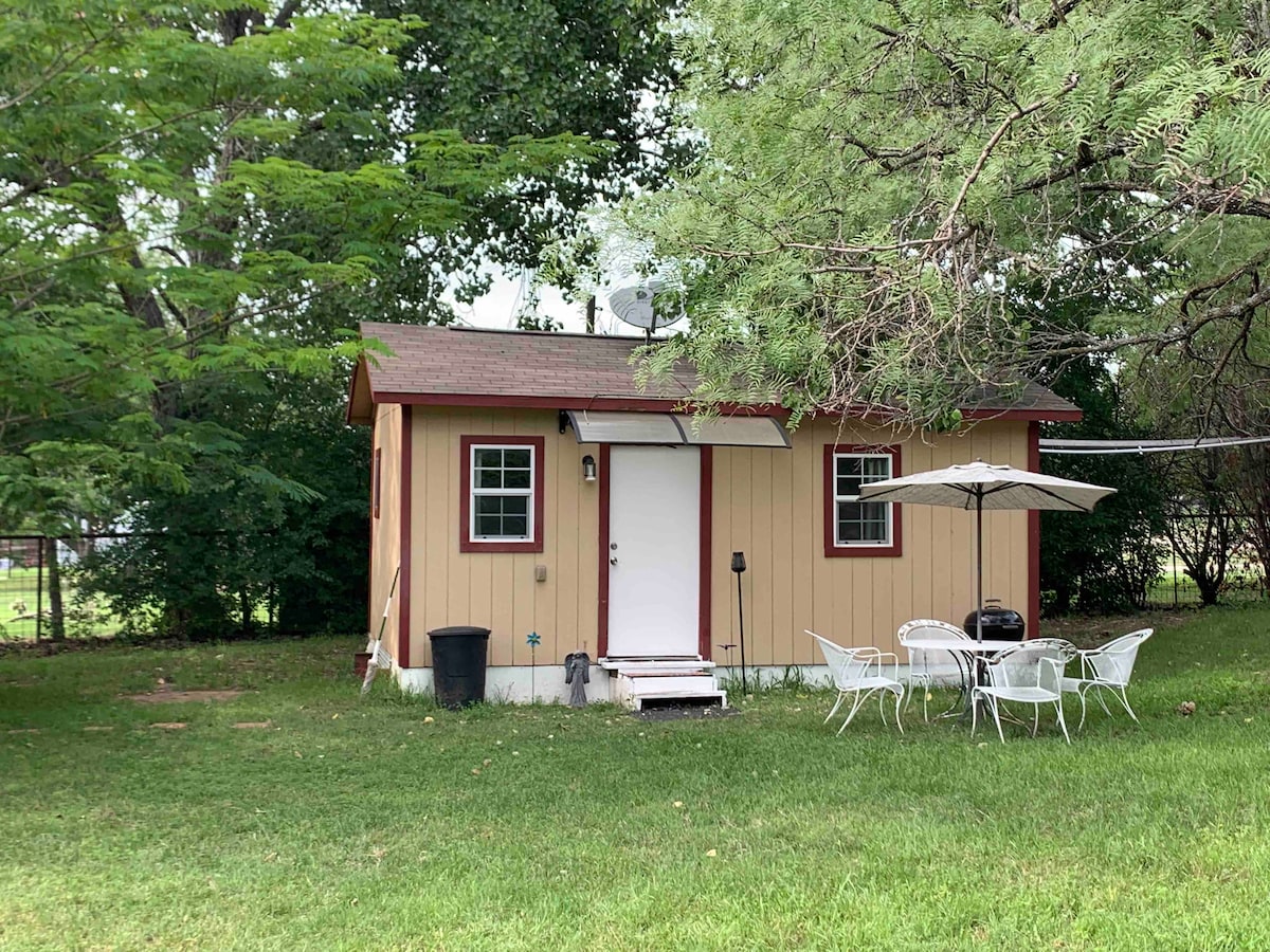 Meget hyggelig hytte i landlige omgivelser, kun 4 miles til tinghuset. Et soveværelse med en queensize-dobbeltseng og et badeværelse. Stort overdækket udendørsområde med siddepladser og spisning. WiFi og kabel-tv. Så mange restauranter og fantastiske antikviteter. Weatherford er den nye hestehovedstad i Texas og kun 30 minutter øst for Fort Worth, hvor vesten begynder! BEMÆRK - Ejeren af denne ejendom er en ejendomsmægler fra Texas. Hvis du leder efter en ejendom og vil have hendes kontaktoplysninger, så giv mig besked.