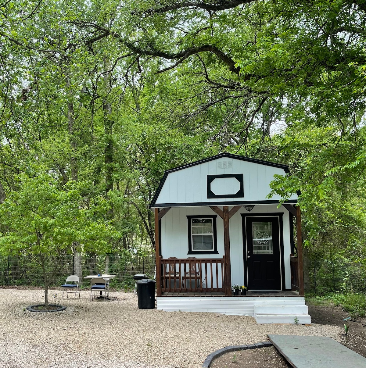 Glamping! superrent, landlige omgivelser! Meget minimalt simpelt minihus/hytte. Vær et barn igen! Udforsk! hurtigt 1 gig internet! :) 10 minutter til Fort Worth! Indhegnet! Sikker! 1 acre! Fredfyldt! Kæledyr er ok! Masser af træer og syngende fugle! Har 2 senge - queensize-dobbeltseng på første etage og queensize-dobbeltseng på loftet. Volleyballnet, lille dam, hængekøje, bålplads, grill, POOL! GRATIS VASKERUM!! kold AIRCONDITION, GODT VARMEAPPARAT! Walmart/butikker kun 2 miles væk. Brug KAJAKKERNE! Meget sjovt, men ikke for følsomme mennesker! :)