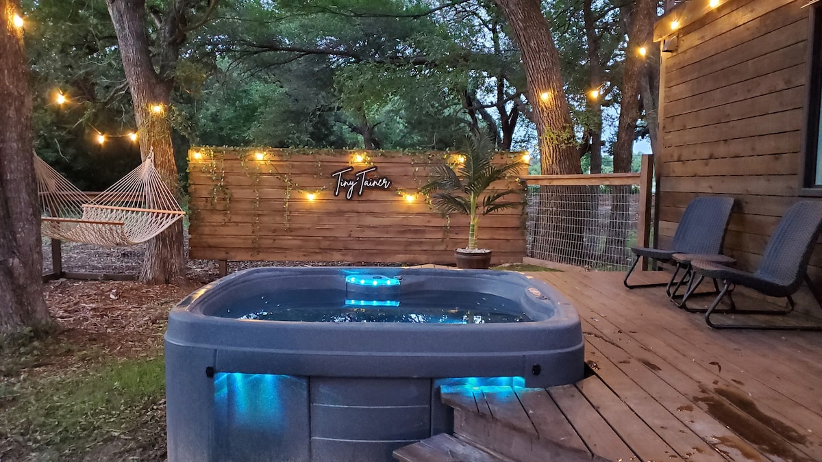 Velkommen til Tiny 'Tainer - et 20'x8' luksuriøst lille skibscontainerhus! Mellem det hyggelige interiør og terrassen bagved med spabad er indendørs og udendørs liv i perfekt harmoni. Beliggende 10 minutter fra I-20, 15 minutter fra både Historic Downtown Weatherford og Granbury. BEMÆRK: Dette er en af 2 enheder på ejendommen. Den anden enhed til leje er The Lonely Bull (40ft container, sovepladser til 3). Ansvarsfraskrivelse: Ja, du kan høre vejstøj. Du vil ikke lægge mærke til det :)