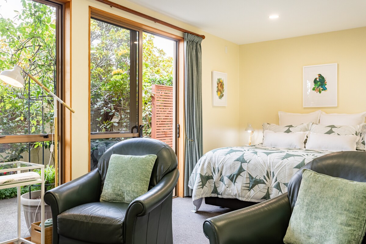 Flygt til en frodig byoase – perfekt til en romantisk ferie, et fredfyldt ophold eller et mellemlanding i Auckland. Te Kawa tilbyder en unik blanding af afslapning og luksus med et eventyrlyst glashus, indbydende boblebad og intim atmosfære for en virkelig mindeværdig oplevelse. Gæstesuiten er arkitektonisk designet med kurateret interiør og har en queensize-dobbeltseng, eget badeværelse, skrivebord, balkon, kaffe- og tefaciliteter – tilstødende værtens hjem, men tilbyder privatliv. • 25 minutter til lufthavnen • 15 minutter til CBD