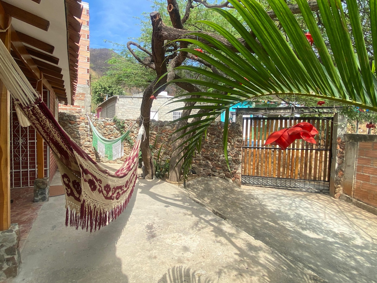 Habitación para amigos o familiares, con baño privado y aire acondicionado tendrás acceso a toda nuestra zona social. Perfecto espacio para disfrutar de unas vacaciones contagiándote de la buena energía de casa Babel, un lugar de hermosos atardeceres. Room for friends or family, with private bathroom and AC you will have access to our entire social area. Perfect space to enjoy a vacation by getting infected with the good energy of the Babel house, a place of beautiful sunsets.