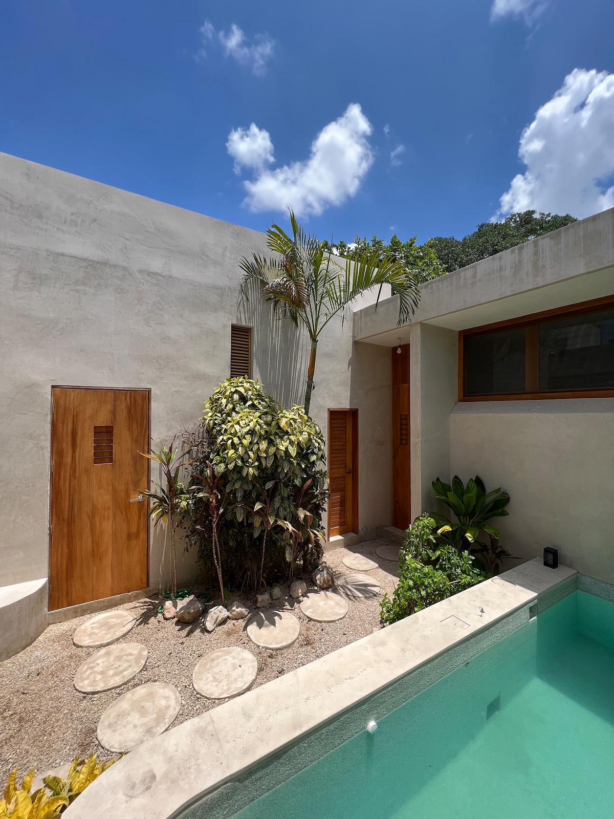 Privat hjem med en god balance mellem kolonial og moderne. Perfekt til en til to personer, der nyder indendørs/udendørs liv. Huset har fantastisk luftgennemstrømning med 16 fods lofter overalt og et soveværelse med aircondition. Terrassen og den private dyppepool gør huset til et perfekt tilflugtssted fra det travle centrum. Kun 1 blok væk fra La Plancha Park, Meridas nye "Central Park" og 2 blokke fra starten af Calle 47 Ruta de Gastronomia, det nyligt fodgængeriserede restaurantdistrikt.