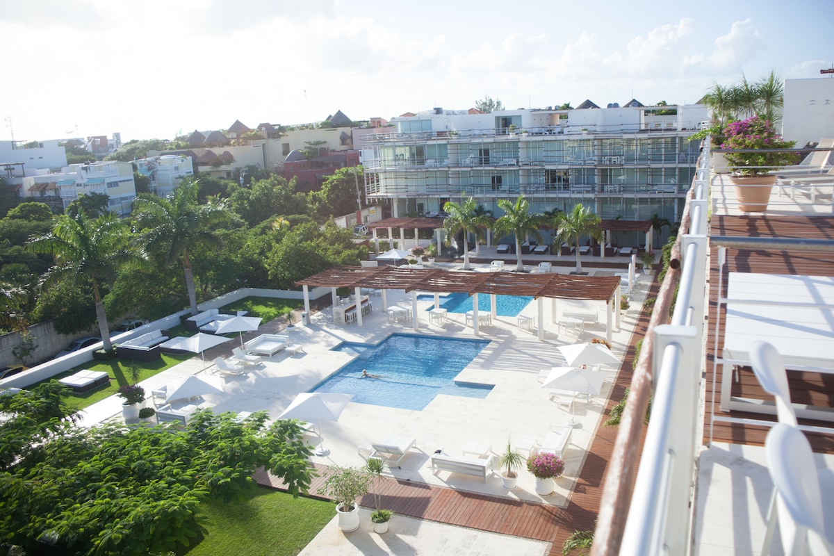 Luksuriøs suite med 1 soveværelse, der tilbyder privatliv på en eksklusiv beliggenhed, der er designet til at få dig til at føle dig i paradis. Med sin uovertrufne beliggenhed kun 150 m fra stranden og 2 minutters gang fra 5th Avenue, hvor du finder restauranter, barer og butikker. Du har også adgang til den bedste tagterrasseudsigt i Playa del Carmen samt concierge og 24-timers sikkerhed.