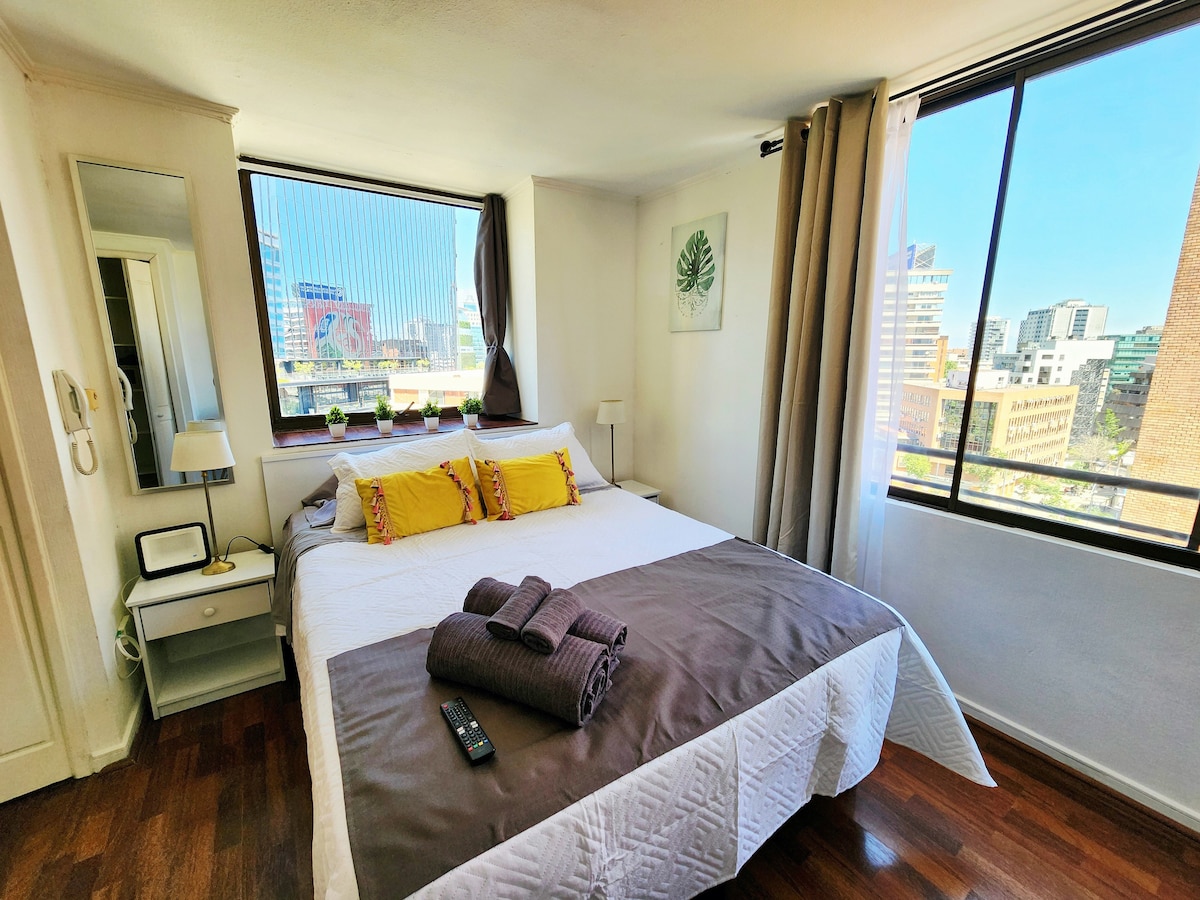 Elegant lejlighed beliggende i hjertet af Providencia. Med en fantastisk udsigt over Andesbjergene og den ikoniske Cerro San Cristóbal. Beliggende kun få skridt fra Los Leones metro (linje 1), Tobalaba MUT bymarked og Costanera Center, det største indkøbscenter i Chile. Omgivet af en bred vifte af restauranter og barer. Det er ideelt til både korte og lange ophold, og vi tilbyder dig et perfekt fristed, hvor du kan udforske Santiago eller slappe af efter en travlhed.