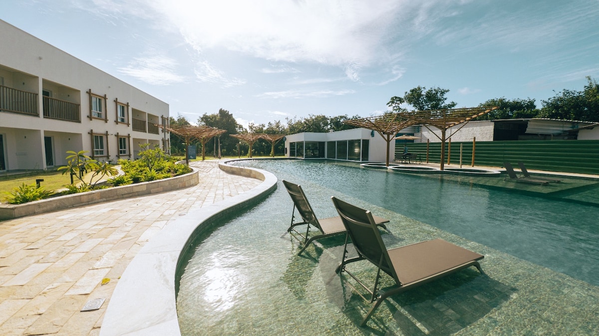 Apartamento com estrutura de resort. Próximo à Praia de Cacimbinhas, pra quem quer curtir a verdadeira Pipa: beleza natural, tranquilidade, diversão.
