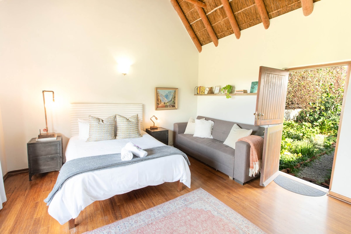 Tilbring en romantisk eller afslappende nat i en hyggelig hytte på The Dragon Fruit Farm, ikke langt fra gården Sluk for alt og fordyb dig i den frodige skønhed, som Garden Route er berømt for. Nyd en gåtur i de anlagte haver eller en vandretur gennem de naturlige skove af guldtræer, eller hyg dig i hytten med selvforsyning, hvor der er friskt kildevand på hanen, og bruseren og badekarret begge er store nok til to For de eventyrlystne er der også et udendørs brusebad og en privat pool.
