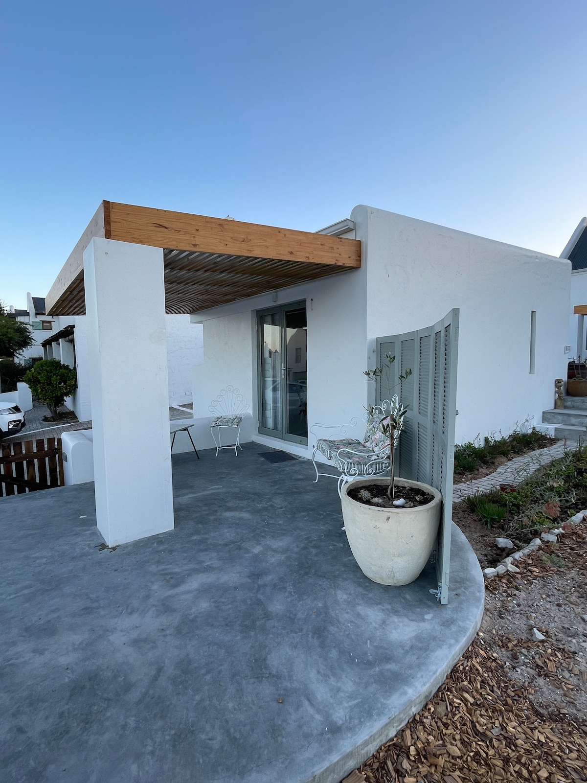 Ikke mere belastning i Hocus Pocus hytte! Perfekt ferie med stue- og køkkenområde i stueetagen, der strømmer direkte ud på det private braai-dæk i træ og ned i poolen omgivet af en vandbaseret have! En kort gåtur til en rolig strand og gåafstand til alle restauranter og landsbyens knudepunkt. En smuk komfortabel og fredelig hytte, der passer ind i atmosfæren i landsbyen. Rustikt og et autentisk sted at trække vejret i havluften og Paternoster-ånden.
