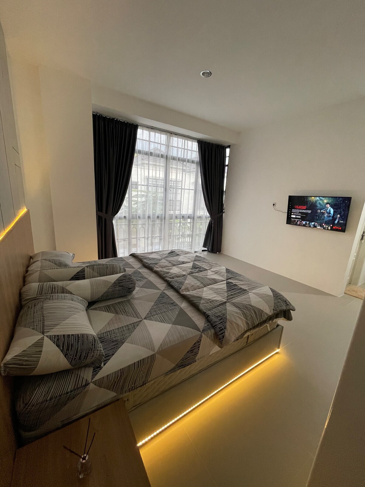 Located in strategic area, puts you near anything you need, work, leisure and relax. When you stay you will get the best facilities from swimming pool, children playground, gym and the hanging garden at 15 th floor. Condo 1 BR • King Size Bed (180x200cm) • Air conditioned Bed room • Kitchen and utensils • Cozy air conditioned Living room with TV • Water Heater, wardrobe, hangers • Shoe cabinet • Toiletries e.g towels , shampoo, shower gel, tissue paper provided • Smart door lock