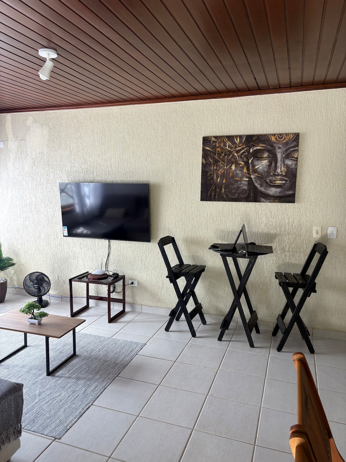 Kom og nyd livet i et hyggeligt og moderne rum, tæt på den atlantisk skov og kun 5 minutters gang fra en af de smukkeste og mest berømte strande i Brasilien, Maresias! Vores bolig er designet med stor omhu for at kunne byde vores venner og gæster, der også ender med at blive venner, velkommen. Vi har en stor plads med fuldt udstyret køkken, stor stue med smart-tv, badeværelse, soveværelse med et nyt og komfortabelt dobbelt seng (hotelstandard) og en baggård med to hængekøjer til glæde efter stranden.