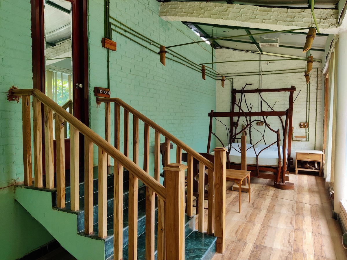 Beliggende i frodige grønne omgivelser får du en bondegårdsfornemmelse med smukke haver og frugtplantager. I haven har vi mange frugttræer og sæsonbestemte økologiske grøntsager. Det er en stueenhed med et lille soveværelse sammen med et privat køkken, et badeværelse sammen med en privat veranda, hvor gæsterne kan sidde og nyde naturen, mens de drikker varm te. Det er perfekt for solorejsende med et begrænset budget.