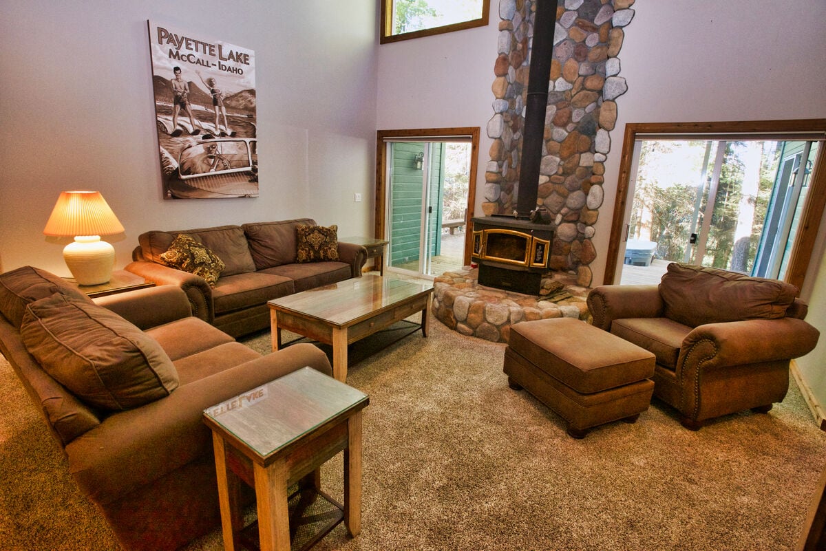 Kom og nyd din private ferie i bjergene! Denne bolig med 3+ soveværelser/2 badeværelser er perfekt til en, to eller tre familier eller en gruppe venner, der kommer for at nyde bjergene. Spabad beliggende i træerne, vandrestier/cc-stier, kælkning, mountainbike, fiskeri, fællesskabs swimmingpool, tennis og pickle ball, golfbane og café, og smukke gåture rundt i nabolaget... vi er 15 minutter fra Brundage Mountain Resort, og en 20 minutters køretur til McCalls smukke sø og maleriske centrum.