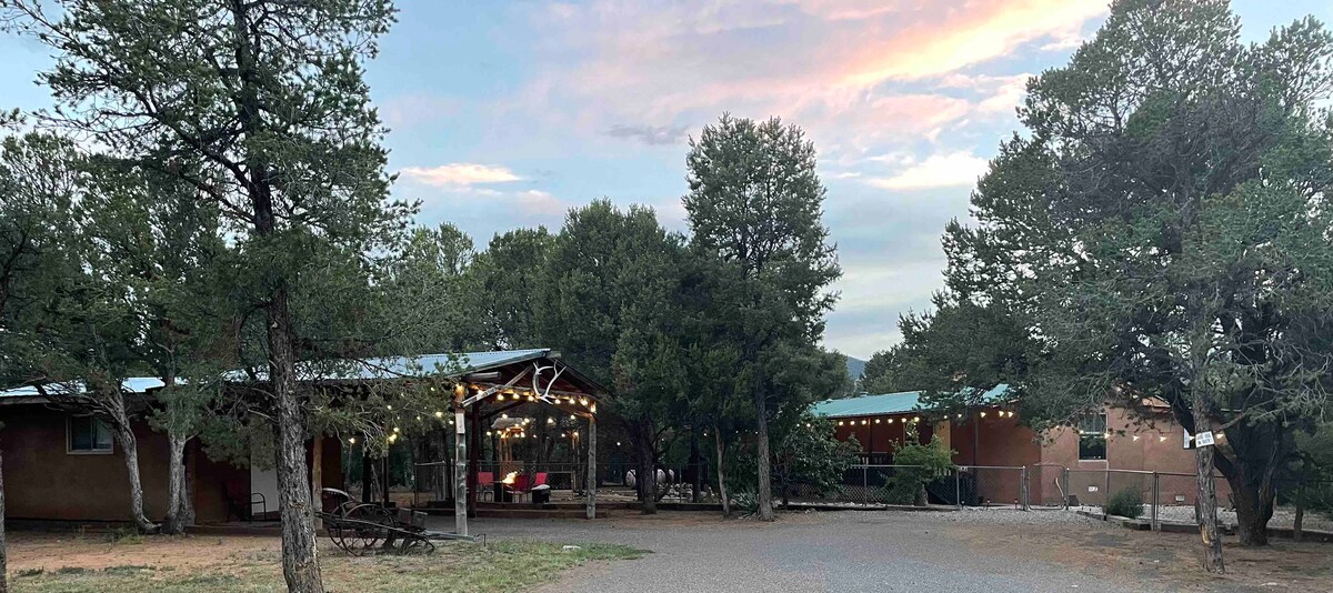 Bogstaveligt talt for enden af vejen ved siden af Pecos National Historical Park. Beliggende på 10+acres for familier og deres kæledyr til at slappe af, nyde den friske luft, have en familie grill, hænge ud ved bålet, lave s'mores, gå en tur, slappe af med en bog, spille hestesko eller bare sidde og få en cocktail. Blandt træerne i den nationale skov tilbyder Rincon Del Cielo en unik udflugt for større familier og grupper. Kun få minutter fra downtown Santa Fe, cykel- og vandrestier og Pecos-floden