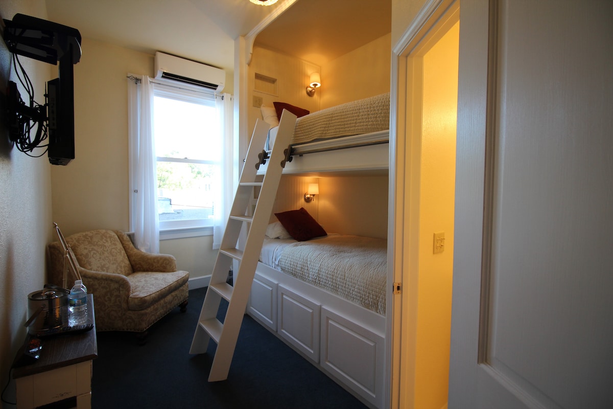 The Bunk Room is the only remaining original room in the hotel and has been restored with built-in twin bunk beds. The Bunk Room is an excellent, no-frills option for those who are simply looking for a comfortable night's rest. Roughly half the size of our standard rooms, the Bunk Room does, however, offer all the same amenities - in-room coffee, cable TV, complimentary Wi-Fi - as larger rooms.