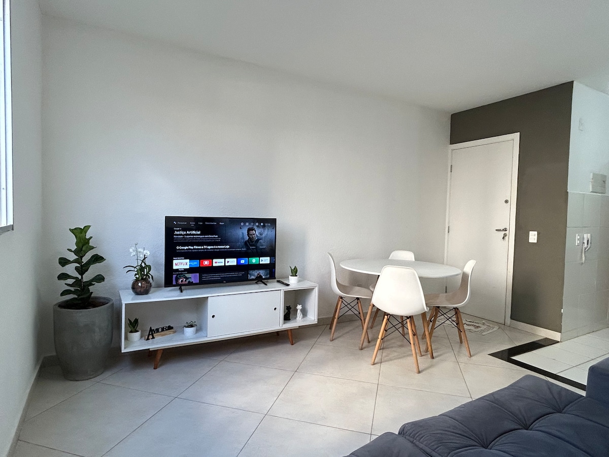 Den møblerede lejlighed med 2 soveværelser og 3 senge (1 dobbeltseng og 2 enkeltsenge). Køkkener med mikrobølgeovn, kaffemaskine, sandwichmaskine, redskaber, køleskab og komfur. Tv, Wi-Fi og loftsventilator. Lejlighed med parkeringsplads, legeplads, grill, minimarked og døgnåben concierge. Beliggende i nærheden af Confins Airport, Administrative City, Galo City og indkøbscenter. Rolig, sikker og nem adgang til regionen.