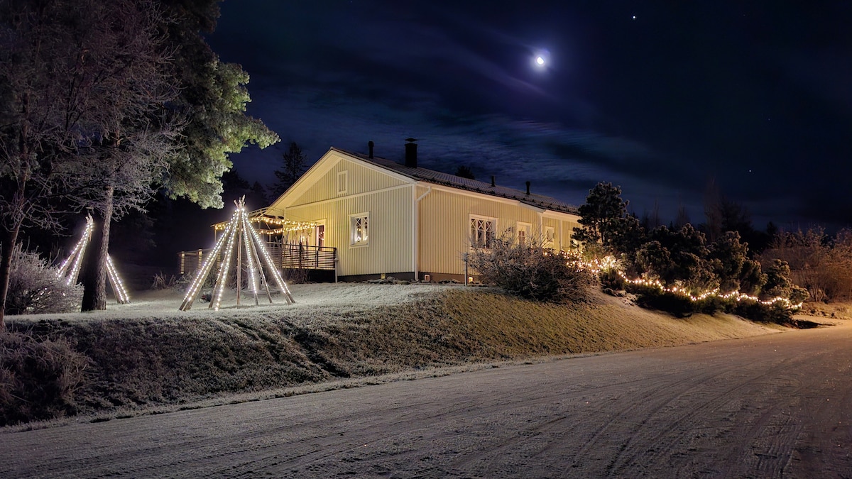 Oplev bolig i Sallatunturi i nærheden af pister og serviceydelser. Bygget i 2021. Bolighus, iglo-grillhus og separat sauna med brændeovn. Mulighed for opladning af elbil på 7 kW, inkluderet i lejeprisen. En træbygget, halvglaset nordlysbrand. Fantastisk til vinterobservation af nordlys og stjerneklar himmel fra interiøret. Om sommeren er hytten oplyst af sommersolen. Der er ingen gardiner i loftet, så hytten forbliver lys i henhold til dagslyset (natfri om sommeren).