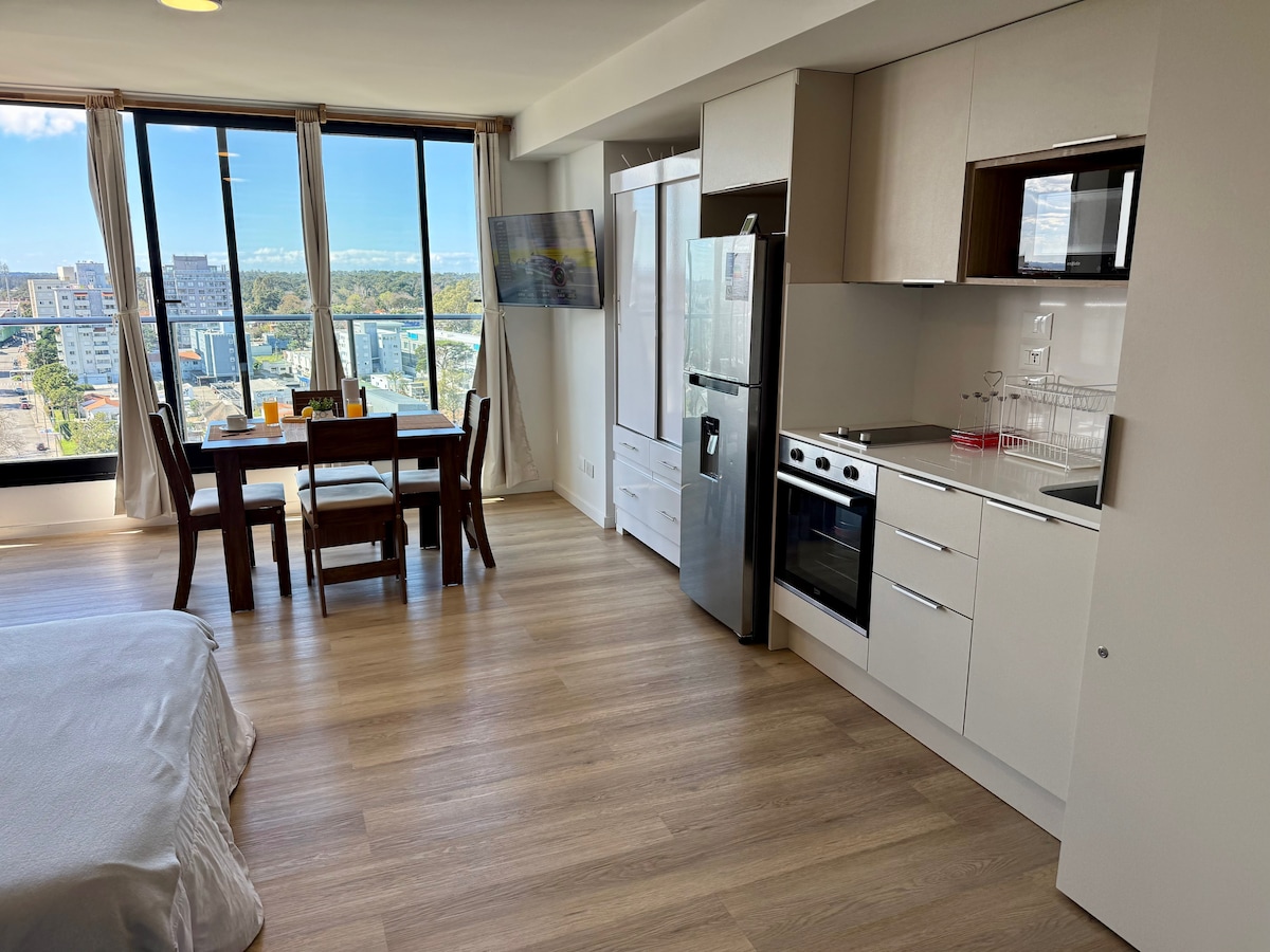 Oplev Punta del Este fra en førsteklasses beliggenhed. Lejligheden ligger på hjørnet af den ikoniske Gorlero Street, kun en blok fra havnen, ideel til at gå rundt i byen og nyde det bedste køkken i havnen. Den har en balkon og en privat terrasse, fuldt udstyret køkken, badeværelse, soveværelse og en sovesofa. Rengøring er inkluderet tre gange om ugen, liggestol og parasol til stranden. Bygningen tilbyder også vaskeri mod ekstra betaling.