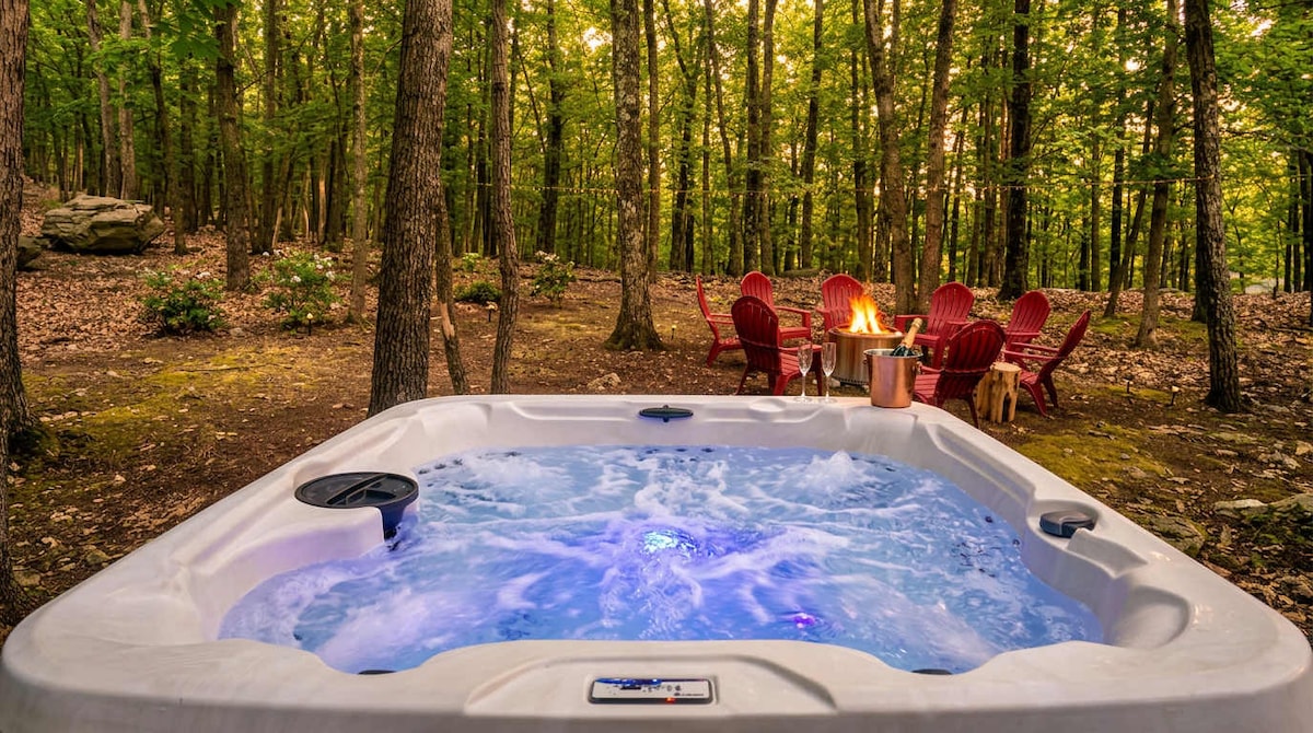 Et virkelig unikt ophold i Pocono Mountains, hjemsted for bølgende bjergterræn, betagende smukke vandfald, blomstrende skovområder, + 170 miles af snoet flod. Gæsterne kan nyde vin under stjernerne i et privat spabad og se film på deres egen 135" filmskærm, der er udstyret med verdens første LED 4K-gamingprojektor. Nyd soveværelser med temaer, og oplev et ophold, hvor skoven tager dig væk, mens du bor i ultimativ komfort + luksus.