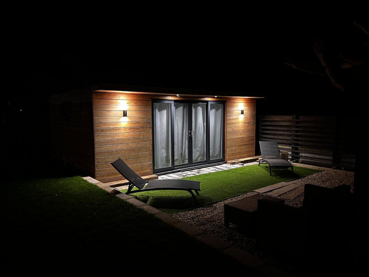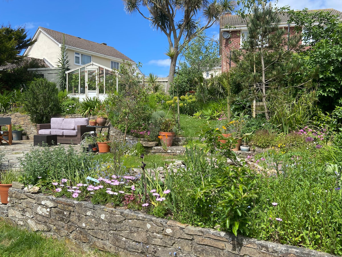 Chaletten ligger under 10 minutters gang til Fistral Beach og 5 minutters gang til Newquay centrum! Den ligger for enden af vores hjemmehave med separat adgang gennem sideporten og ned ad trapperne til en privat terrasse/have, som du kan bruge. Der er nem adgang til parkering (1 bil) i vores rummelige indkørsel. Du kan se os og vores hund i haven på et tidspunkt, så du er velkommen til at sige hej. Jeg er altid glad for at give aktivitetsanbefalinger omkring Newquay og Cornwall.