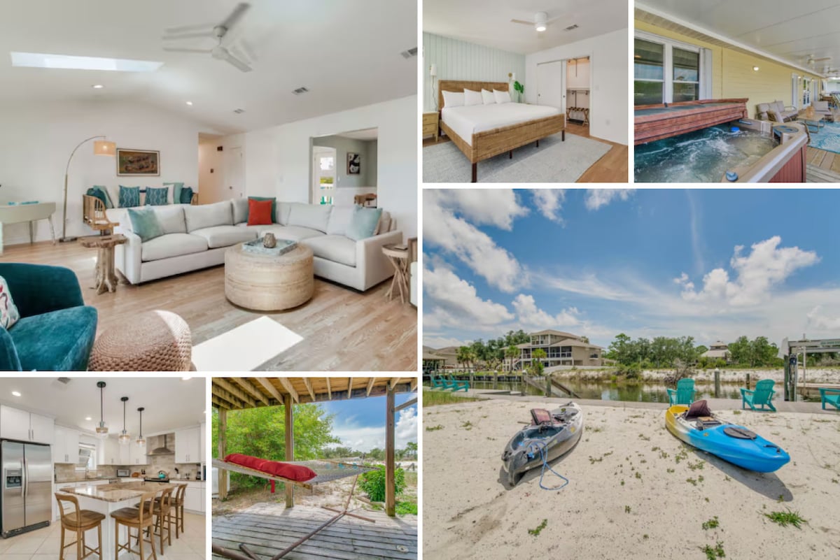 Perdido Beach House ved vandet med kanoer og kajakker.